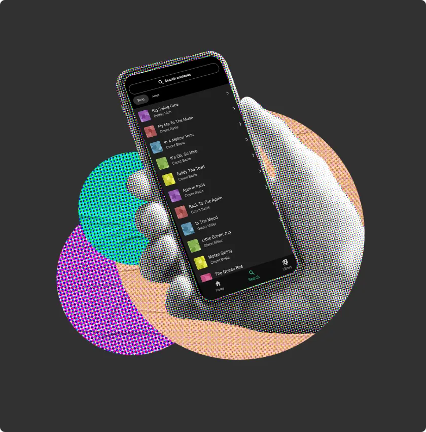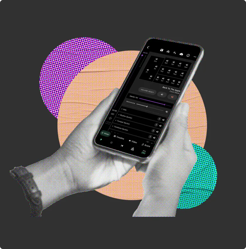 一緒に演奏をするためのツールには最高の演奏者が奏でる音が必要です。配信される全ての楽曲の演奏はAmbitious Productions率いるプロミュージシャンが奏でます。